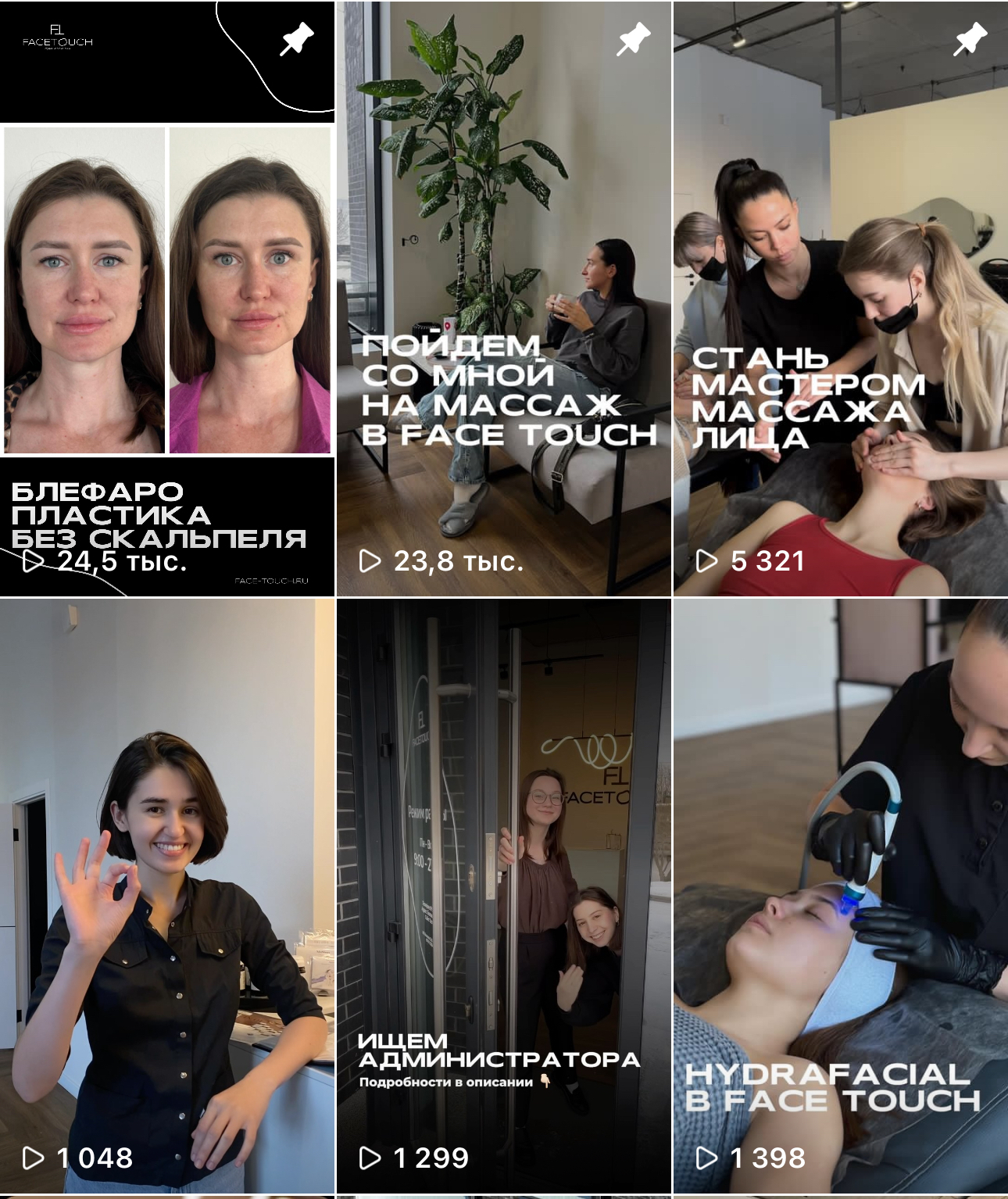 - Продажи. Самый популярный контент студии – это техники, которые можно делать дома, а также результаты работы мастеров. Поэтому мы продавали именно за счет этого контента, а также делали контент на работу над проблемами кожи лица: отечность, морщины, носогубные складки.